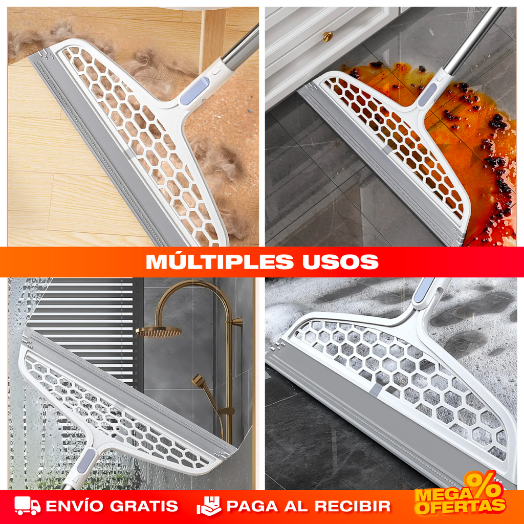 Esta escoba de silicona no solo es versátil, sino también eficiente. Diseñada para abordar diversos tipos de suciedad, desde polvo hasta manchas pegajosas, ofrece un rendimiento excepcional en pisos y baños. Su mango extensible facilita llegar a lugares difíciles, convirtiéndola en la elección perfecta para mantener tu hogar limpio y ordenado.