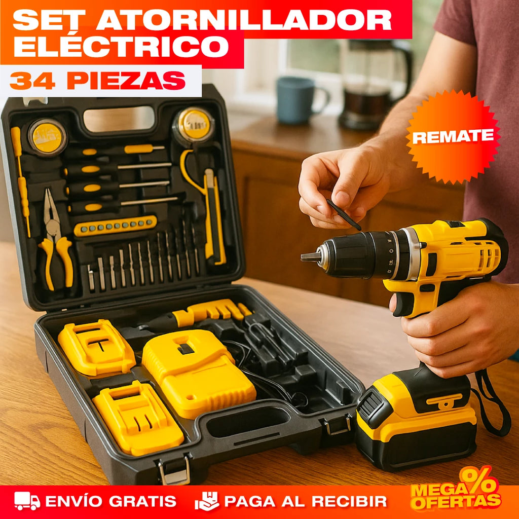 1 Set Atornillador Eléctrico 34 Piezas.