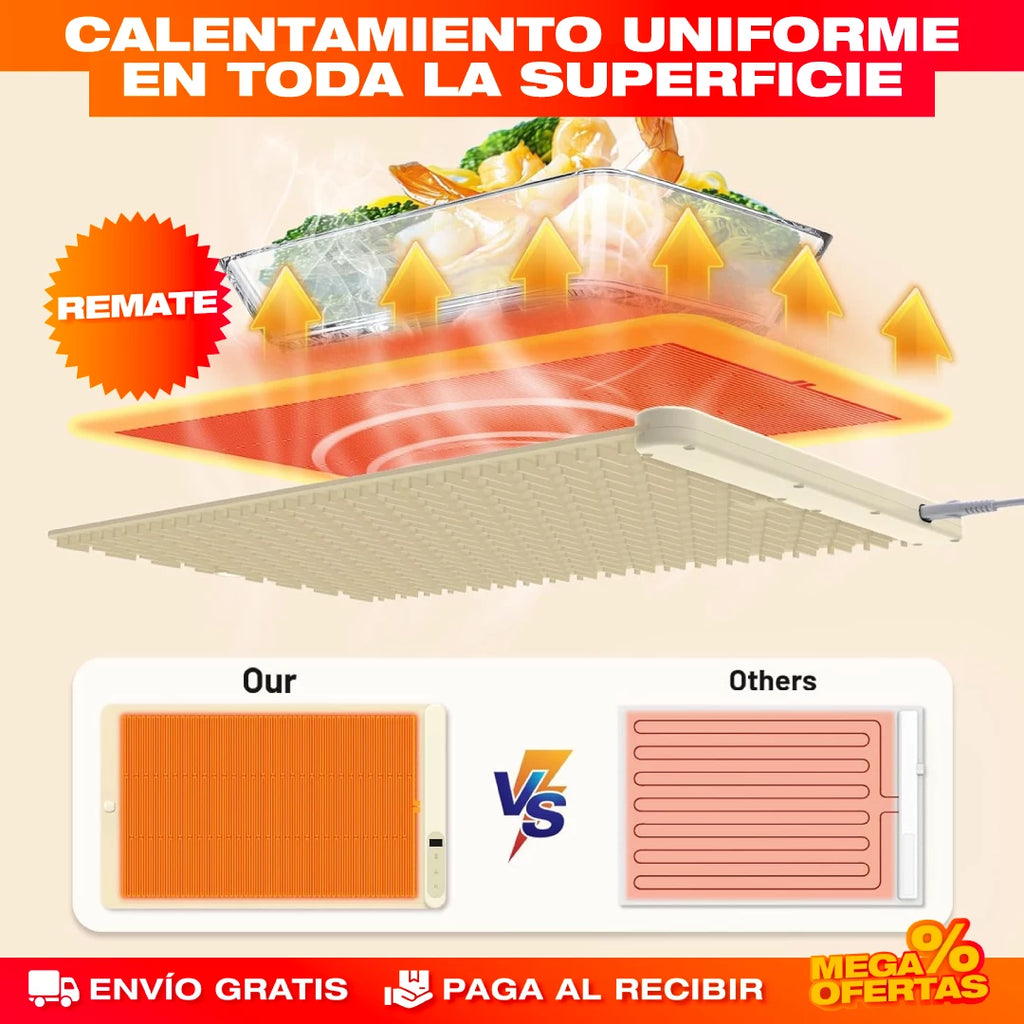 Porque servir la comida caliente y lista ya no tiene que depender del microondas ni de correr con la olla a la mesa. Esta alfombrilla calefactable es elegante, segura, fácil de limpiar y eficiente, perfecta para quienes disfrutan de una mesa bien servida en cualquier ocasión.